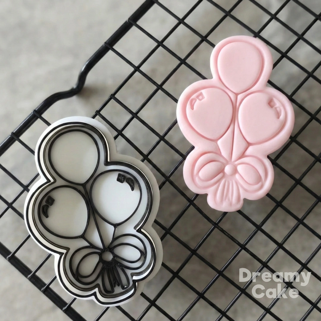 This balloon cookie cutter and fondant stamp set features three classic balloons in a clean, modern style – ideal for birthday parties, baby showers, gender reveal celebrations and any fun, colourful event.