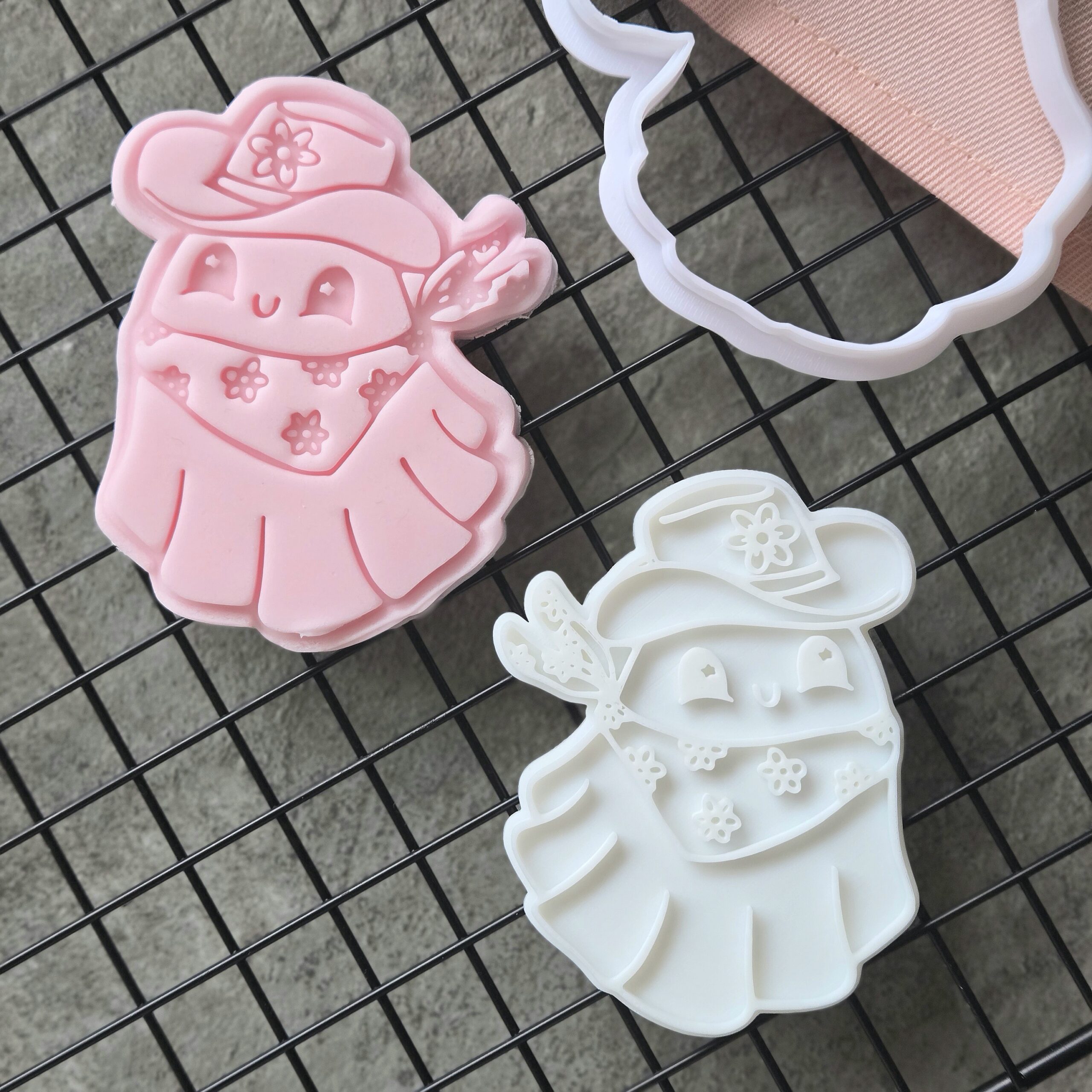 Cowgirl Ghost Fondant Embosser | Western Halloween Cookie Stamp | Cute Spooky Biscuit
