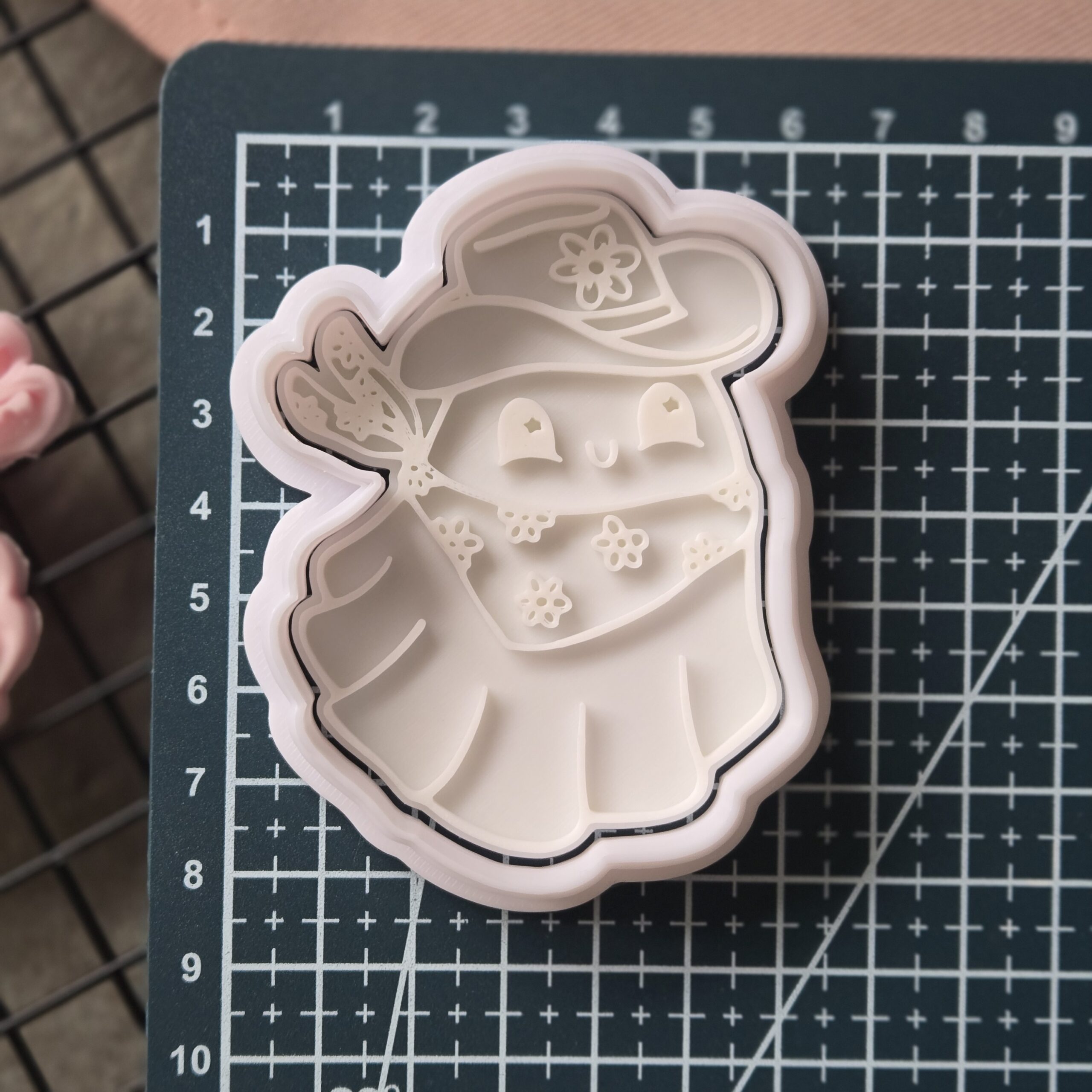 A cute western-style ghost with cowgirl hat, neckerchief and tiny flowers. One press gives a polished topper for Halloween boxes, yeehaw themes and market trays. 3D-printed in the UK for crisp, consistent embossing.
