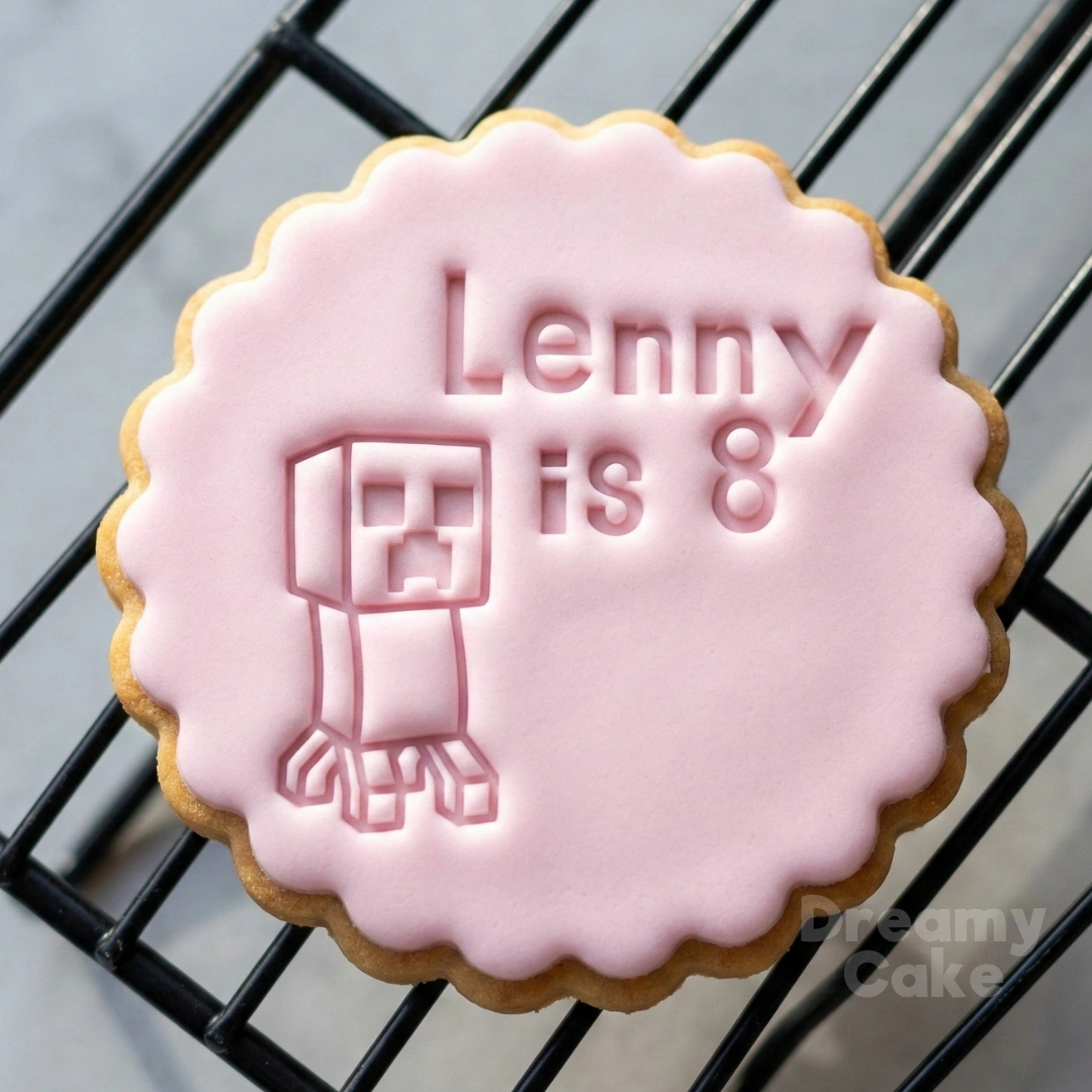 Custom Gamer Birthday Cookie Stamp | Pixel Character Name & Age Embosser