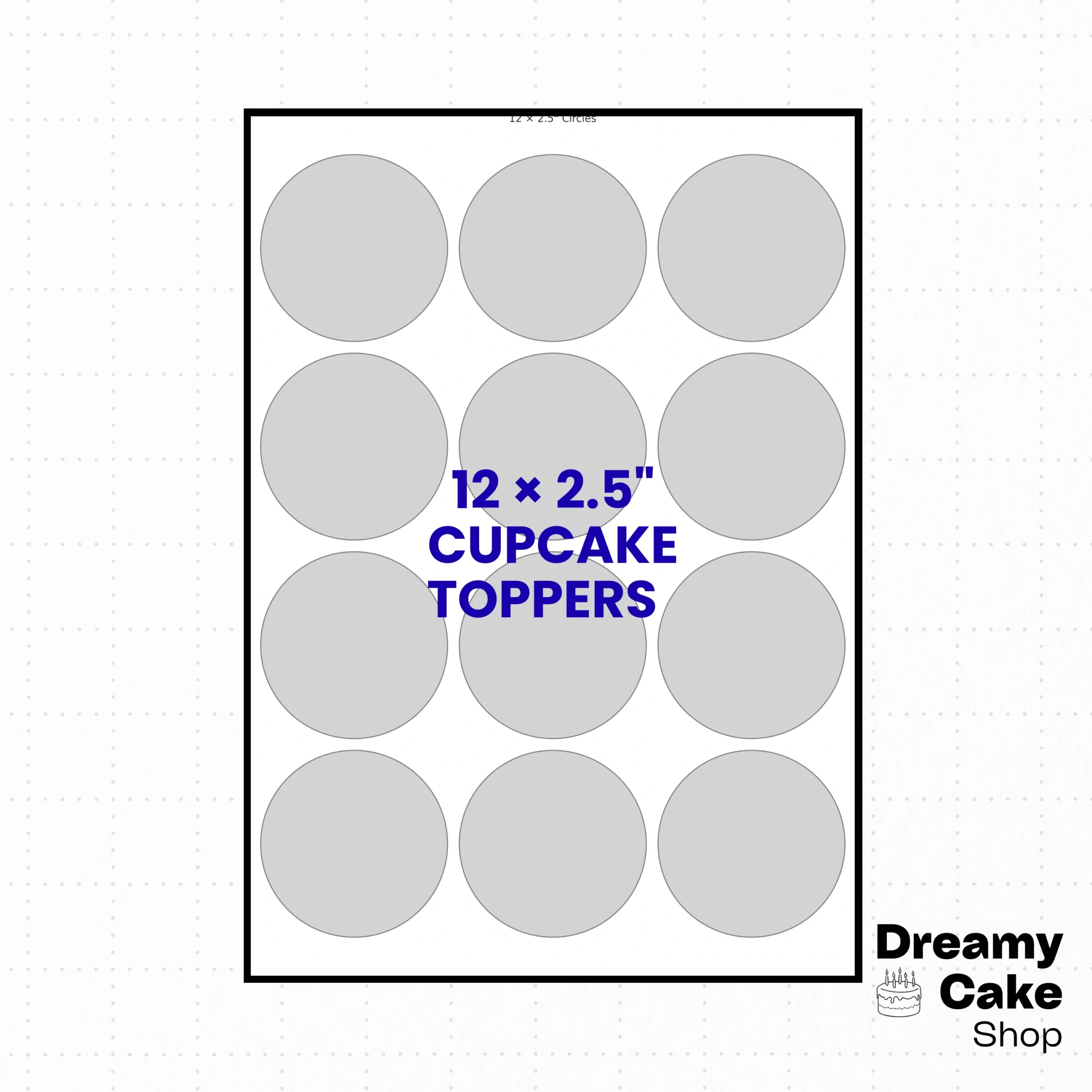 - 12 × 2.5″ circles: larger cupcakes, tall cookies, treat box toppers.