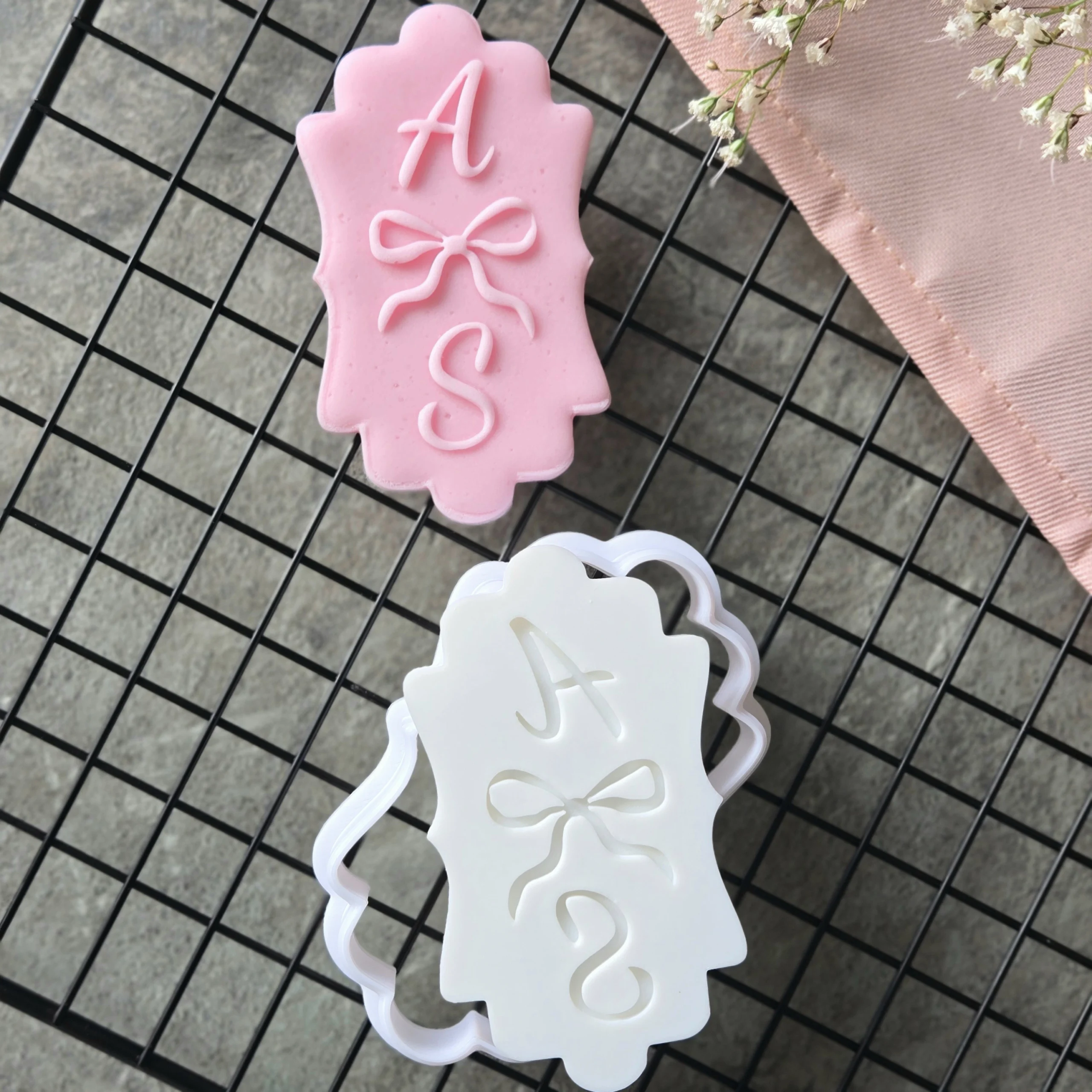 Celebrate love with this custom plaque fondant embosser, featuring elegant script initials and a bow 🎀 Personalise with your letters (A&S, M+J, etc.) to make unforgettable wedding favors, engagement biscuits, or bridal shower treats