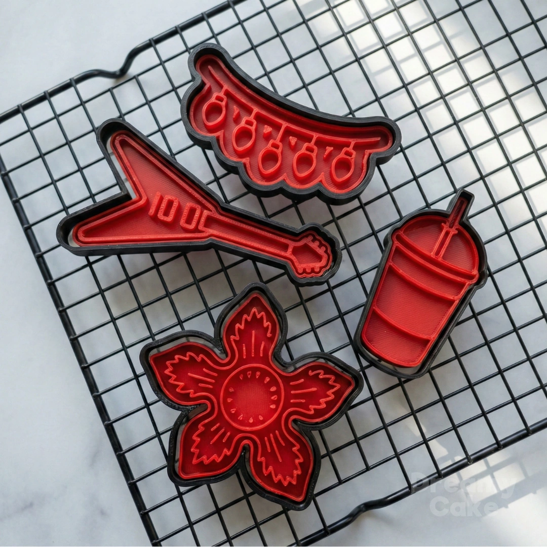 - Pack includes 4 cookie cutters (Demogorgon, Lights, Guitar, Drink)