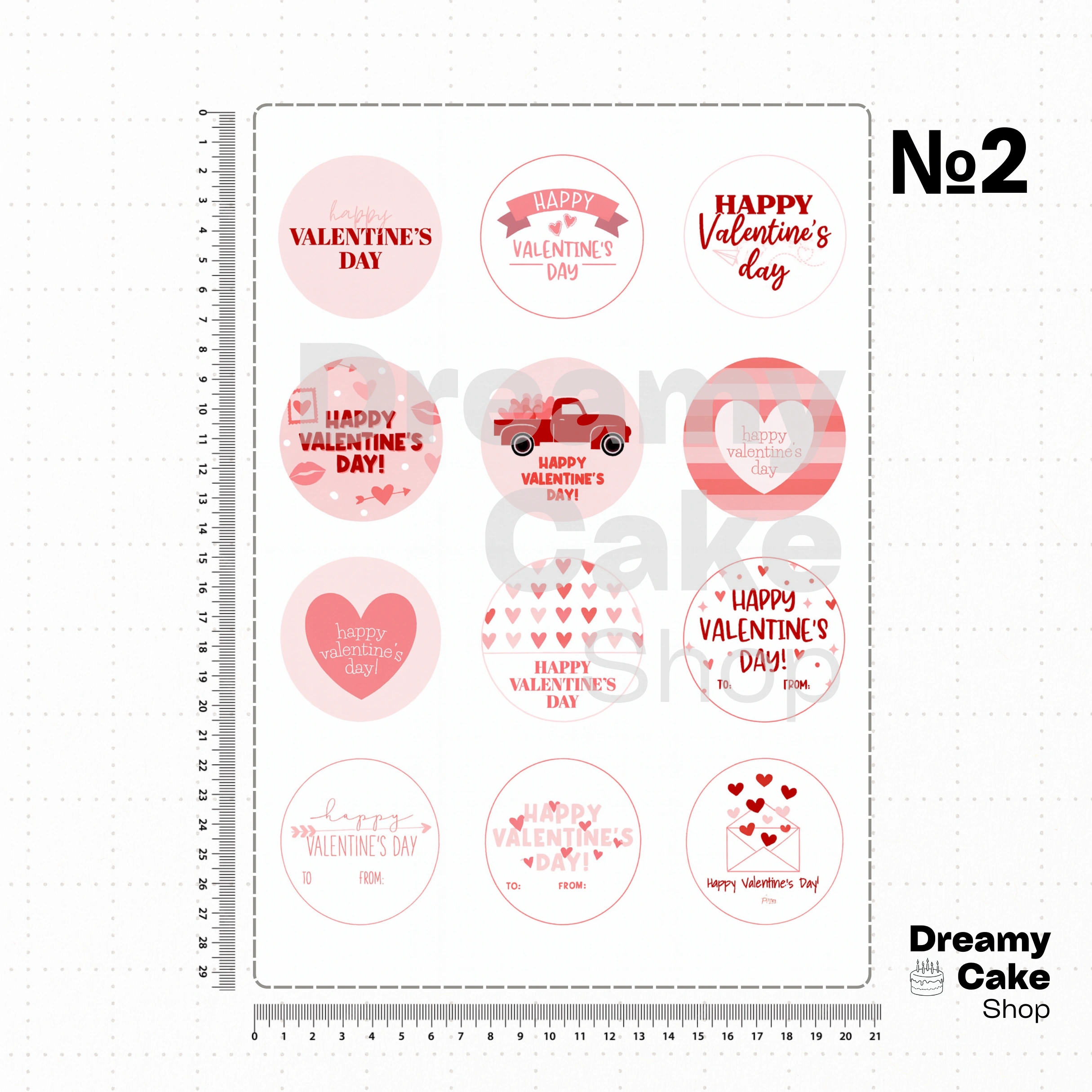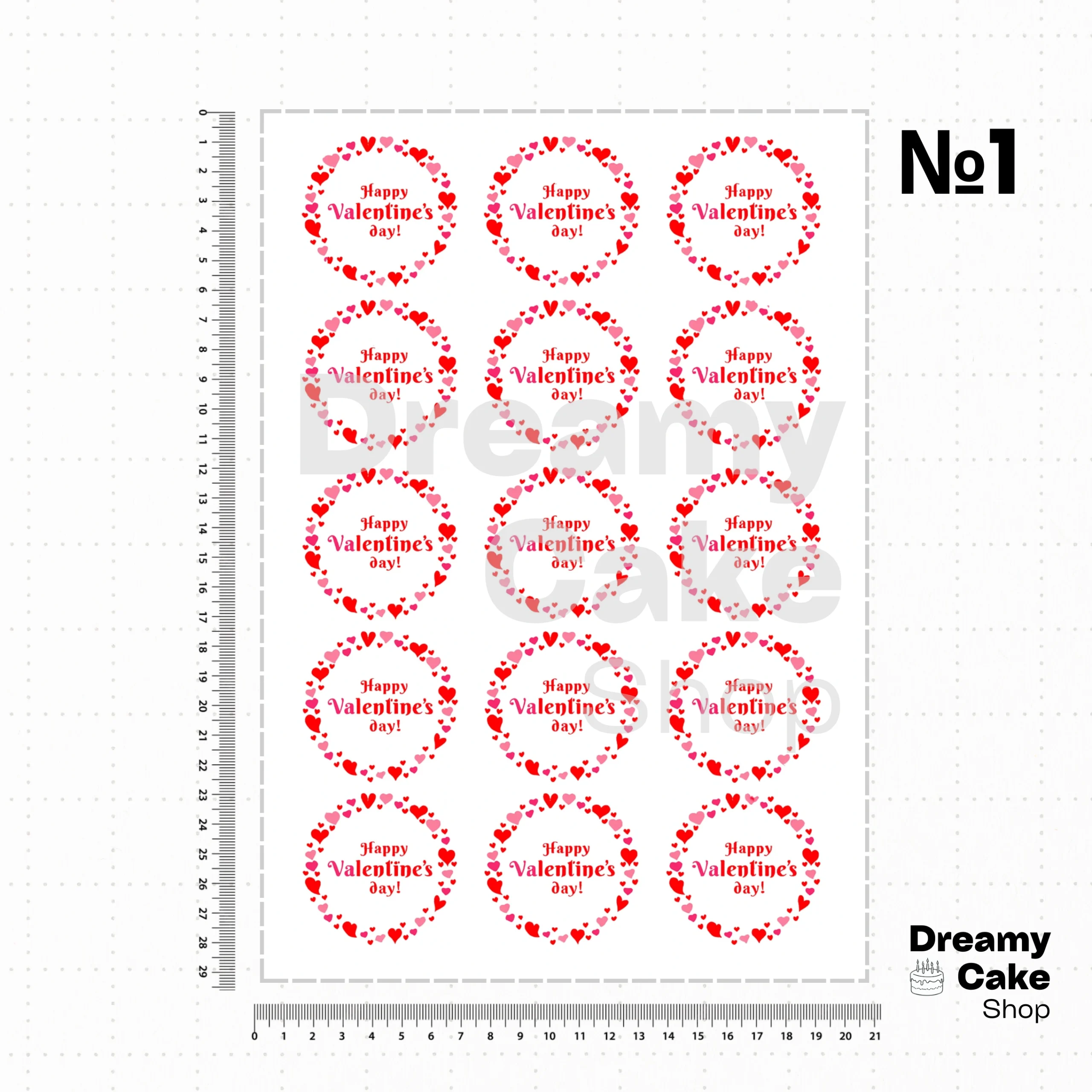Romantic Valentine’s Day edible cupcake toppers printed on sugar paper with a cute hearts design. Perfect for topping cupcakes, brownies and small cakes – printed in the UK with food-safe edible inks.